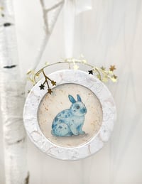 This miniature original artwork was crafted with pencil and watercolor on printmaking paper. It was given a shower of gold gouache speckles and a wash of mixed-color pastel, and was signed on front.