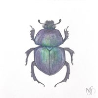 This little original features a purple scarab crafted with watercolor, pencil, and Pearlex shimmer on paper.